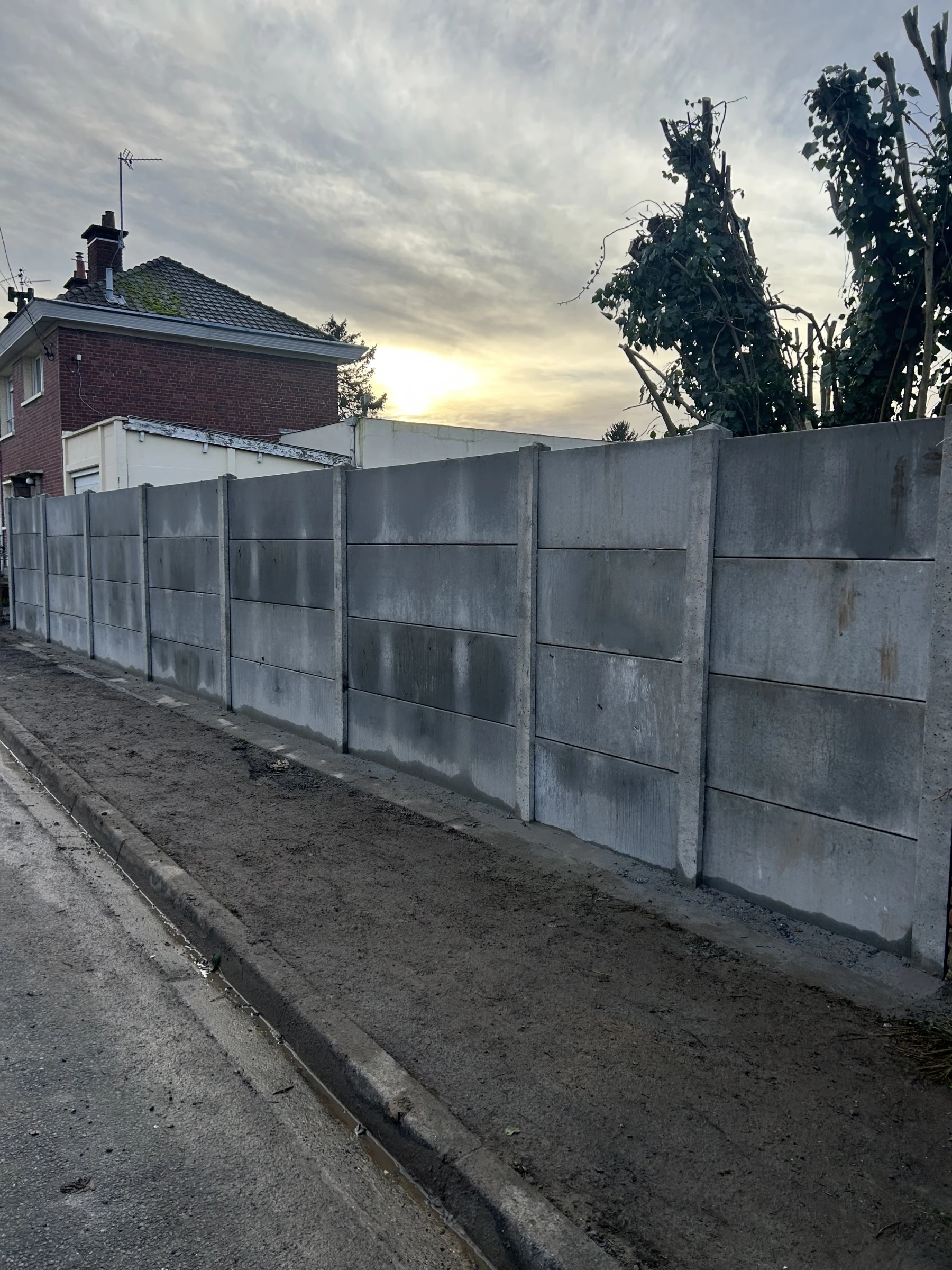 Notre client nous a fait confiance afin d'effectuer la fourniture et la pose d'une clôture béton suite à une tempête . Nous avons enlever les débris de clôture et abattre le muret puis nous avons poser la clôture béton.