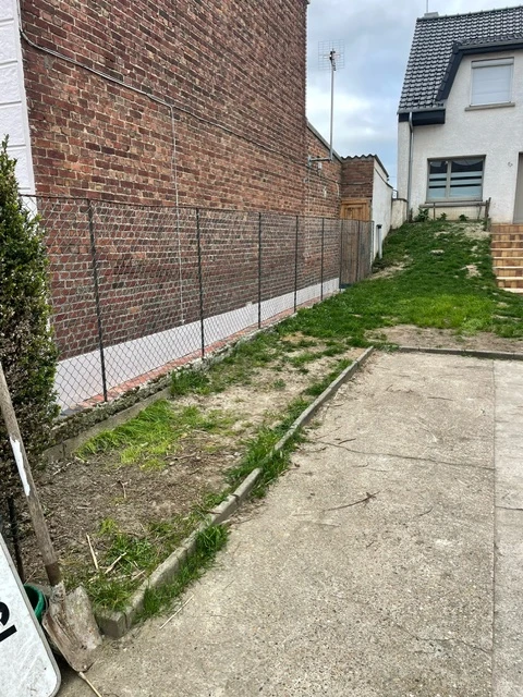 Notre client nous a fait confiance afin d'effectuer la fourniture et la pose d'une clôture en bois. Nous avons du abattre les haies existantes et rogner les souches afin de pouvoir mettre en place la clôture rigide avec des soubassements en béton, RAL 6005 Vert sur l'arrière du terrain et RAL 9005 Noir à l'avant.